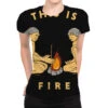Sublimation is a process of printing to fabric (and other substances) that provides the best quality, most durable printing option. In sublimation, the inks are fused into the fabric as opposed to sitting on top of the basic such as in inkjet or screen printing. The process not only gives fabrics a softer touch after the printing, but it is also very durable. The color remains strong in outdoor lighting and after extensive washing so it’s the ideal process for All Over Women’s T-Shirt.