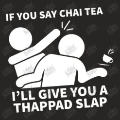 Digital printing is an amazing process that involves your artwork “Chai Tea Thappad Slap” being processed by a computer and then printed directly onto the surface of your product. Digital printing is not a heat transfer or applique, as the ink directly adheres to the fabric of your shirt. Each printing process has its strengths, and our artwork team will weigh these when deciding which to use for your art.