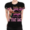 Sublimation is a process of printing to fabric (and other substances) that provides the best quality, most durable printing option. In sublimation, the inks are fused into the fabric as opposed to sitting on top of the basic such as in inkjet or screen printing. The process not only gives fabrics a softer touch after the printing, but it is also very durable. The color remains strong in outdoor lighting and after extensive washing so it’s the ideal process for All Over Women’s T-Shirt.