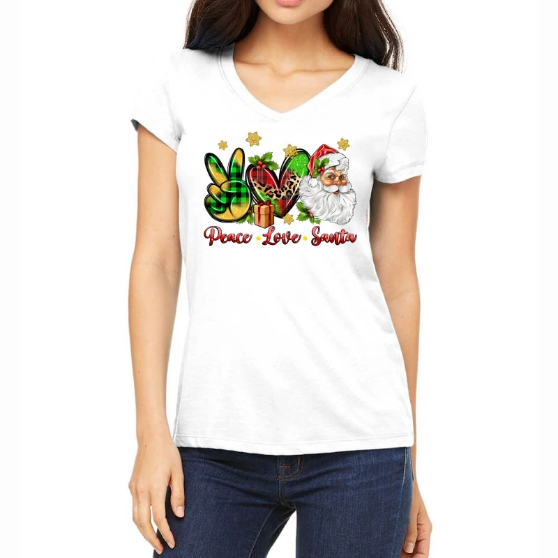 Digital printing is an amazing process that involves your artwork “Peace Love Santa” being processed by a computer and then printed directly onto the surface of your product. Digital printing is not a heat transfer or applique, as the ink directly adheres to the fabric of your shirt. Each printing process has its strengths, and our artwork team will weigh these when deciding which to use for your art.