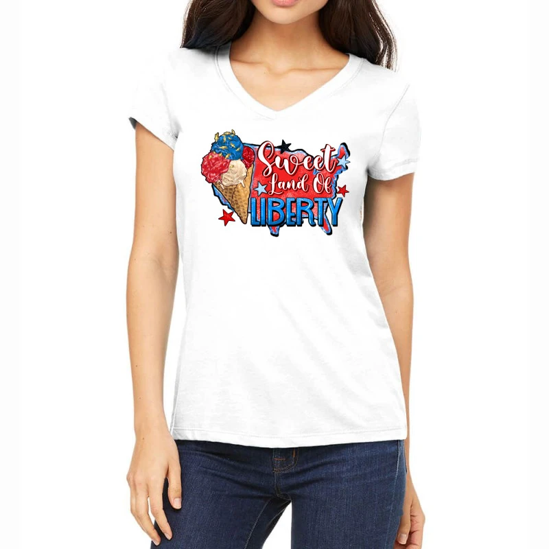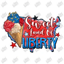 Digital printing is an amazing process that involves your artwork “Sweet Land Of Liberty” being processed by a computer and then printed directly onto the surface of your product. Digital printing is not a heat transfer or applique, as the ink directly adheres to the fabric of your shirt. Each printing process has its strengths, and our artwork team will weigh these when deciding which to use for your art.